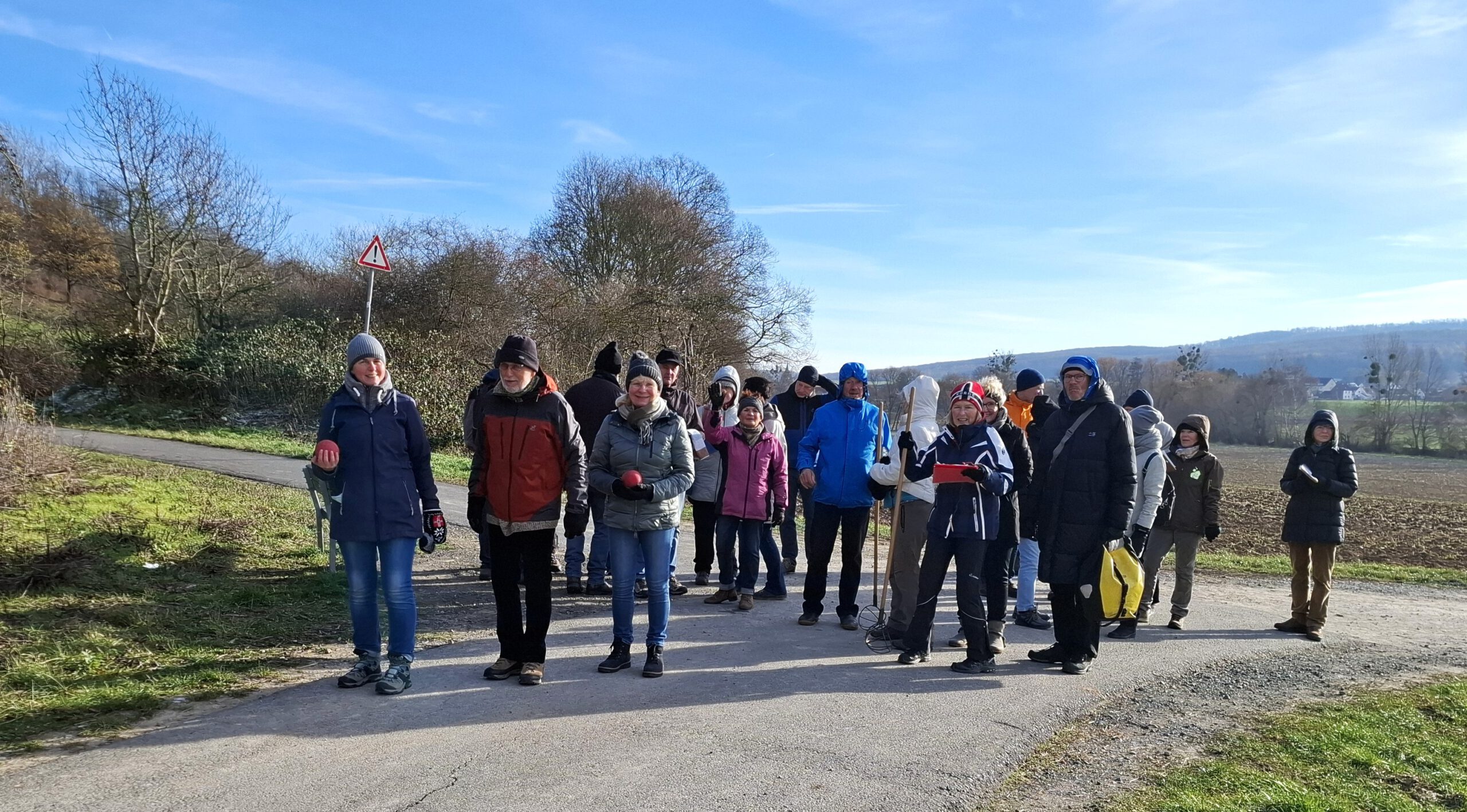 Der Radweg, der teilweise auf einem ehemaligen Bahndamm verläuft, ist seit vielen Jahren die Hausstrecke der Eulenträger von der Höhe. Nachdem alle gegen 10.15 Uhr eingetroffen waren, wurde die Zusammensetzung der Mannschaften im Losverfahren ermittelt und es ging los. Manche der roten und schwarzen Kugeln mussten nach einem Fehlwurf im Graben oder in dem hohen Gras gesucht werden, was aber in diesem Jahr wegen des gefrorenen Bodens nicht so schwierig war.